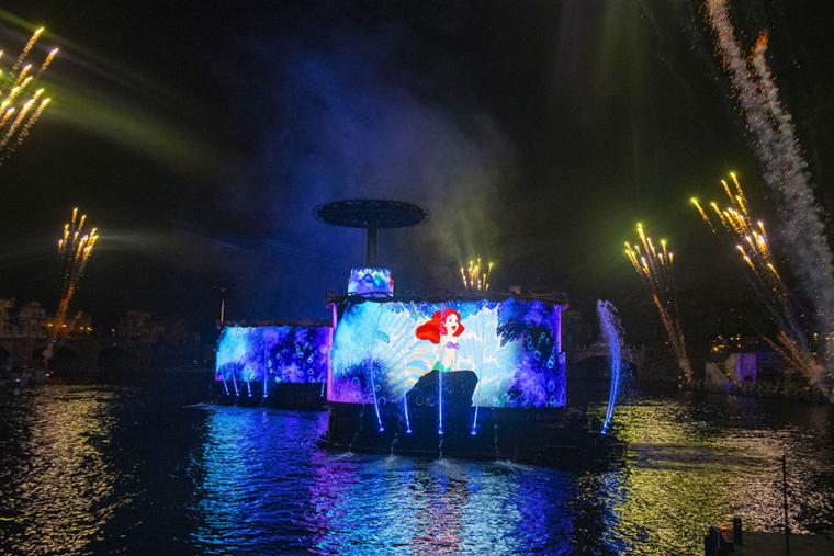 続いて、『リトルマーメイド』のパートへ。海の魔女アースラが登場します。ホテルミラコスタの外壁いっぱいにアースラが映し出され、迫力満点!