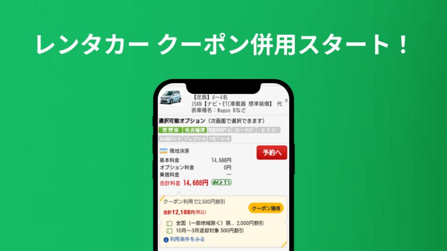 レンタカー予約に、最大3種類のクーポンを併用できるようになりました
