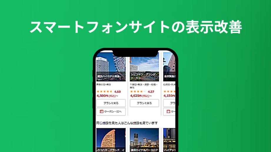 公開日: 2021/11/25 お客さまの声 お客さまの声 スマホサイトをもっと使いやすくして欲しい スマートフォントップページの検索フォームや閲覧履歴を改善しました スマートフォントップページでは、検索フォーム絞り込みフィルターのデザインを変更し、予算や絞り込み条件の設定がより使いやすくなりました。 閲覧履歴では、画像サイズを大きくしたり総合評価や価格情報を追加するなど、より多くの宿情報から宿泊先を選ぶことができるようになりました。 今回の改善ポイントはこちら! ※内容は掲載当時のものであり、現在とは異なる場合がございます。 サービス改善に対するご要望はこちら Article survey お客様のご意見をお聞かせください このページは気に入っていただけましたか? 不満 やや不満 ふつう やや満足 満足