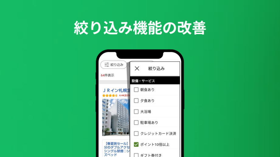 国内宿泊で「ポイント10倍以上プラン」の絞り込み検索が可能になりました