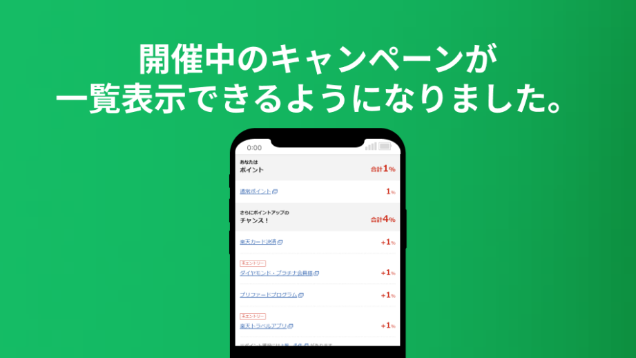 公開日: 2023/11/14 お客さまの声 お客さまの声 楽天トラベルで開催中のポイントアップキャンペーンが分かりづらい ポイントアップキャンペーンを一覧化しました 楽天トラベルで開催中のポイントアップキャンペーンやもらえるポイントが分かりづらいというお声がございました。 そこで楽天トラベルで開催中のキャンペーンを一覧で表示するようにいたしました。 未エントリーのポイントアップキャンペーンも表示されるのでぜひご活用ください! 今回の改善ポイントはこちら! ポイント内訳の見方はこちら! サービス改善に対するご要望はこちら Article survey お客様のご意見をお聞かせください このページは気に入っていただけましたか? 不満 やや不満 ふつう やや満足 満足