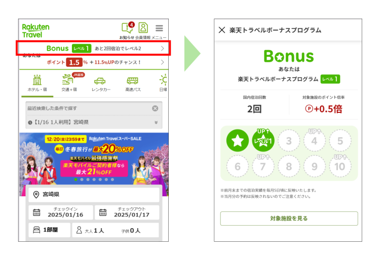 ボーナスプログラムの特典内容が分かりづらいレベルアップやポイントアップに関する表記を改善しました