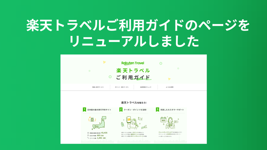 問い合わせ先や領収書の発行方法がわからない楽天トラベルご利用ガイドのページをリニューアルしました