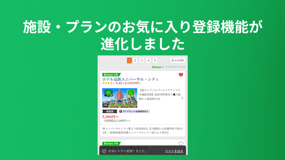 お気に入り登録機能をもっと便利にしてほしい施設・プランのお気に入り登録機能が進化しました