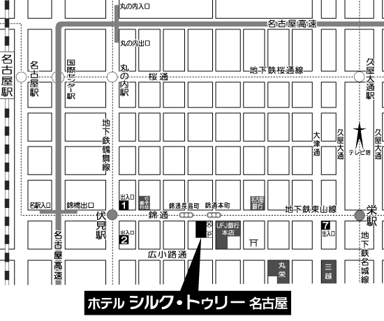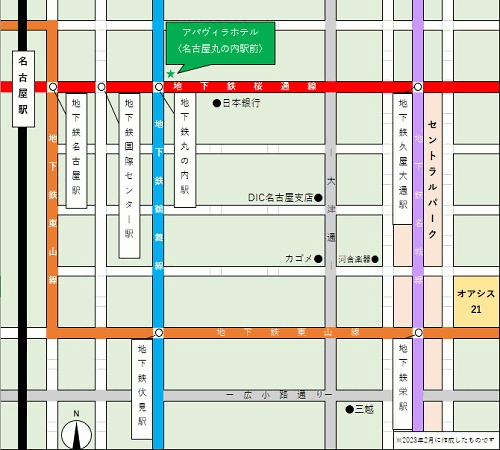 [アクセス]JR「名古屋駅」より地下鉄桜通線2駅3分「丸の内駅」、 3番出口より徒歩1分 (地下鉄 鶴舞線利用時は2番出口)![]()