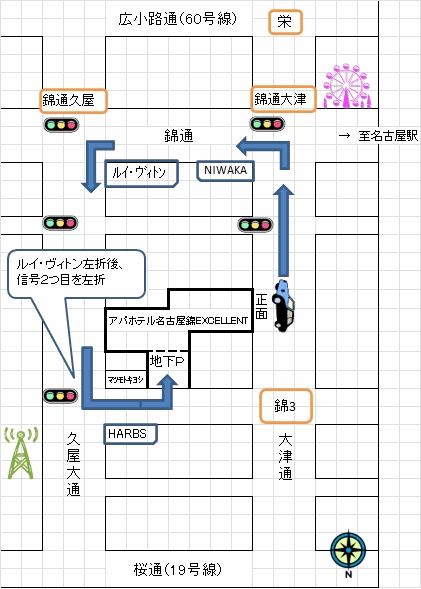 [アクセス]地下鉄東山線・名城線 栄駅13番出口より徒歩6分、地下鉄名城線 矢場町駅1番出口より徒歩5分![]()