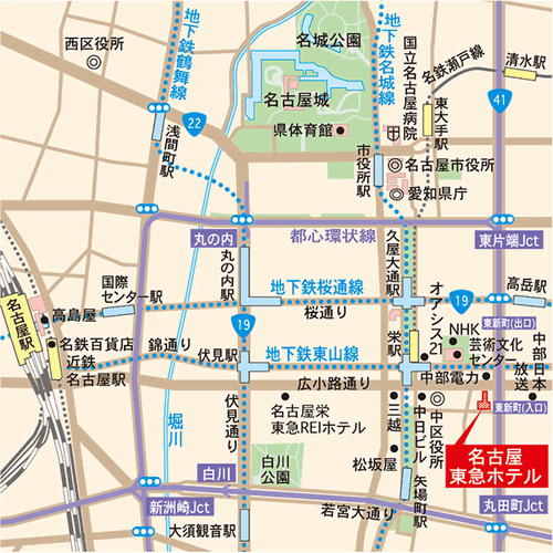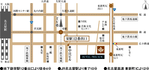 [アクセス]JR名古屋駅桜通口よりタクシーにて約7分 地下鉄東山線栄駅1番出口より徒歩約2分![]()
