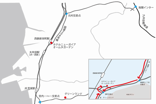 [アクセス]福岡空港から天神まで地下鉄で10分・天神から西鉄電車特急で56分・西鉄新栄町下車徒歩3分/九州道南関ICより車で20分![]()
