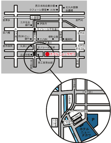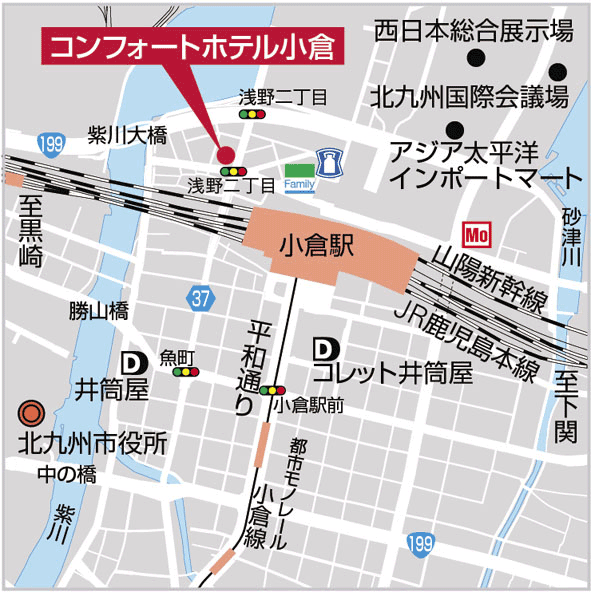 [アクセス]新幹線小倉駅より徒歩8分/小倉駅直結モノレール(100円)2駅目旦過駅より徒歩1分。繁華街に位置し小倉の街を昼夜共に満喫![]()