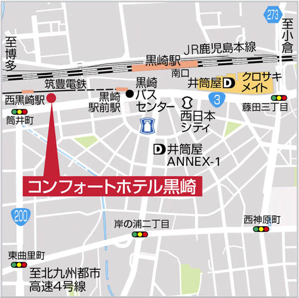 [アクセス]JR 黒崎駅より徒歩3分 ●北九州都市高速4号線「黒崎」出口?約6分 ●北九州空港?バス、黒崎バスセンター下車、徒歩2分![]()