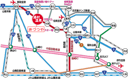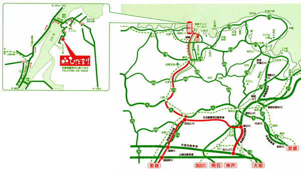 [アクセス]JR 城崎温泉駅より徒歩13分, 車 大阪より 中国道→吉川JCT→舞鶴若狭自動車道→春日JCT→北近畿豊岡自動車道![]()