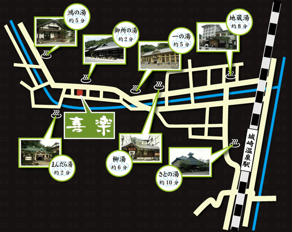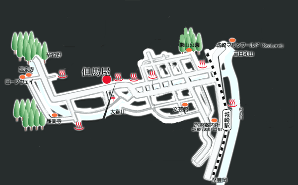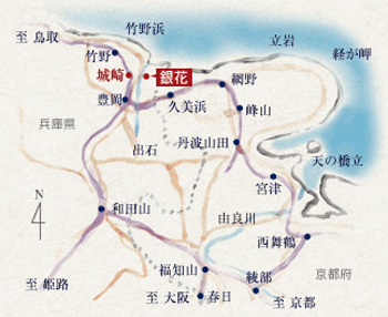 [アクセス]JR大阪駅→山陰線・福知山→城崎駅下車、町内バス有り、徒歩10分![]()