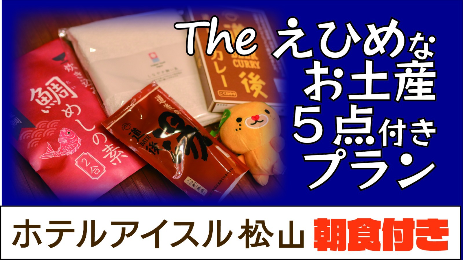 愛媛土産をお持ち帰り! ご自身様にも、ご家族樣用にもどうぞ♪ 以下の5点のお土産をチェックインの際にお渡しさせて頂きます♪ ①今治タオル 厳選された今治ブランドのフェイスタオルです♪ 抜群の吸水性と、肌触りはやみつきになります! ②道後の湯 日本最古と言われている”名湯”道後温泉の入浴剤です♪ 体の芯からあったまる〜♪ ③鯛めしの素 愛媛では”鯛めし”が名物です。 地元愛媛で作った鯛めしの素。 ご飯と一緒に炊き込んで、お召し上がりください! ④道後ビールカレーorシチュー ビールがシチューやカレーに入ってる!? そうなんです。愛媛名物”道後ビール”で コトコト煮込んで作っちゃいました。 これが美味なんです♪ ※カレー・シチューはお選びいただけません。 プレゼントはどちらか一方になります。 ⑤”みきゃん”のマスコット 愛媛県のイメージアップキャラクター 「みきゃん」と一緒にご自宅にお帰りください♪ 「キャンキャン」と鳴くので、実は犬がモチーフなんですよ♪ ※お土産はおひとりさまにつき1セットお渡しいたします。 朝食テーマは【愛媛をアイスル】! 愛媛の美味しさをたっぷり詰め込んだ、こだわりの朝ごはんをお楽しみください。 鯛めし2種類(炊き込み・出汁かけ) じゃこ天・じゃこカツ・地元産麦味噌のお味噌汁 地元野菜を使用した20種類以上のサラダバー 鯛の焼き魚など、出来立てのオーダーメニュー デザート・フルーツなどを含めた 40種類以上 のバイキング形式! ◆ 宇和島鯛めし&炊き込み鯛めし 愛媛を代表する2つの鯛めしが食べ比べできます! ◆ じゃこ天&じゃこカツ 瀬戸内の味、人気のじゃこ天に加えて、サクッと揚げたじゃこカツもご提供。 ◆ 自家製厚切りベーコン&パン・サラダバー・麦みそのお味噌汁 洋食派にも嬉しいメニューが揃っています。 ◆ インカの卵(おひとり様1個) 内子町産の特別な卵を卵かけごはんで。※スタッフまでお声かけください。 ◆ ポンジュース飲み放題! 愛媛といえばやっぱりこれ! 【朝食時間】 6:30〜9:30(最終入店 9:15) ※時間に余裕を持ってお越しください。