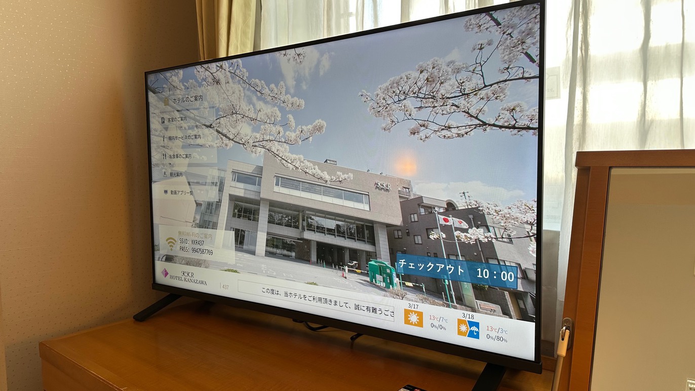 加湿機能付き空気清浄機完備 お部屋からは金沢城公園が望めます。140〜160センチ巾のベットでゆったり