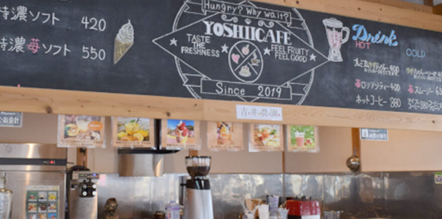 あきひめ、紅ほっぺなどのいちご狩りも体験できます。農園カフェでは、新鮮な果物を使ったスイーツが1年中味わえます。